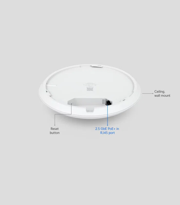 • با استاندارد Wi-Fi 7 و پشتیبانی از باند 6GHz، UB اکسس پوینت یوبیکیوتی مدل UBIQUITI U7-PRO آماده برای شبکه‌های آینده و محیط‌های پرترافیک.