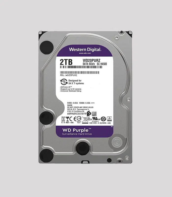 با WD Purple 2TB میتوانید بهراحتی فضای ذخیرهسازی پروژههای نظارتی کوچک و متوسط را مدیریت کنید: پشتیبانی از تعداد بالای استریمها، مقاوم در برابر نوسانات حرارتی و ارتعاشات محیط NVR، و پشتوانهی گارانتی رسمی سازنده برای آرامش خیال شما. این هارد برای کاربردهایی که نوشتن مداوم و حجم کاری بالا دارند (workload up to ~180 TB/year در برخی مدلها) بهینه شده است.